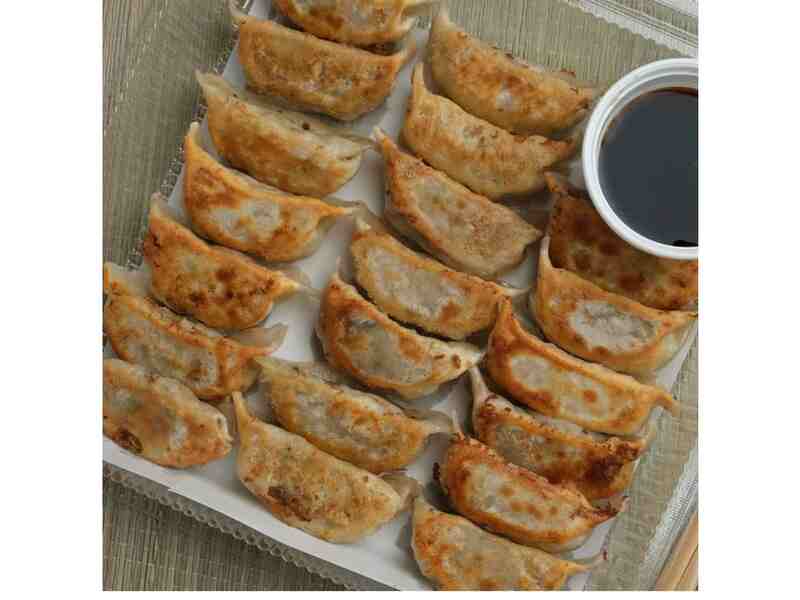 20 pcs beef gyoza with dipping sauce.